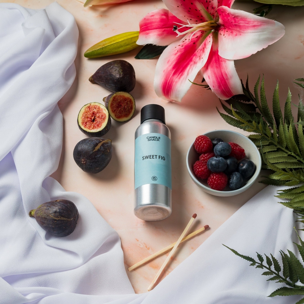 100 gram duftolje til lys. Sweet Fig duftolje er en frisk og søt duft som kombinerer de naturlige tonene av modne fiken med et hint av grønne blader og delikate fruktige undertoner. Denne duften bringer en følelse av naturens friskhet og varme inn i hjem
